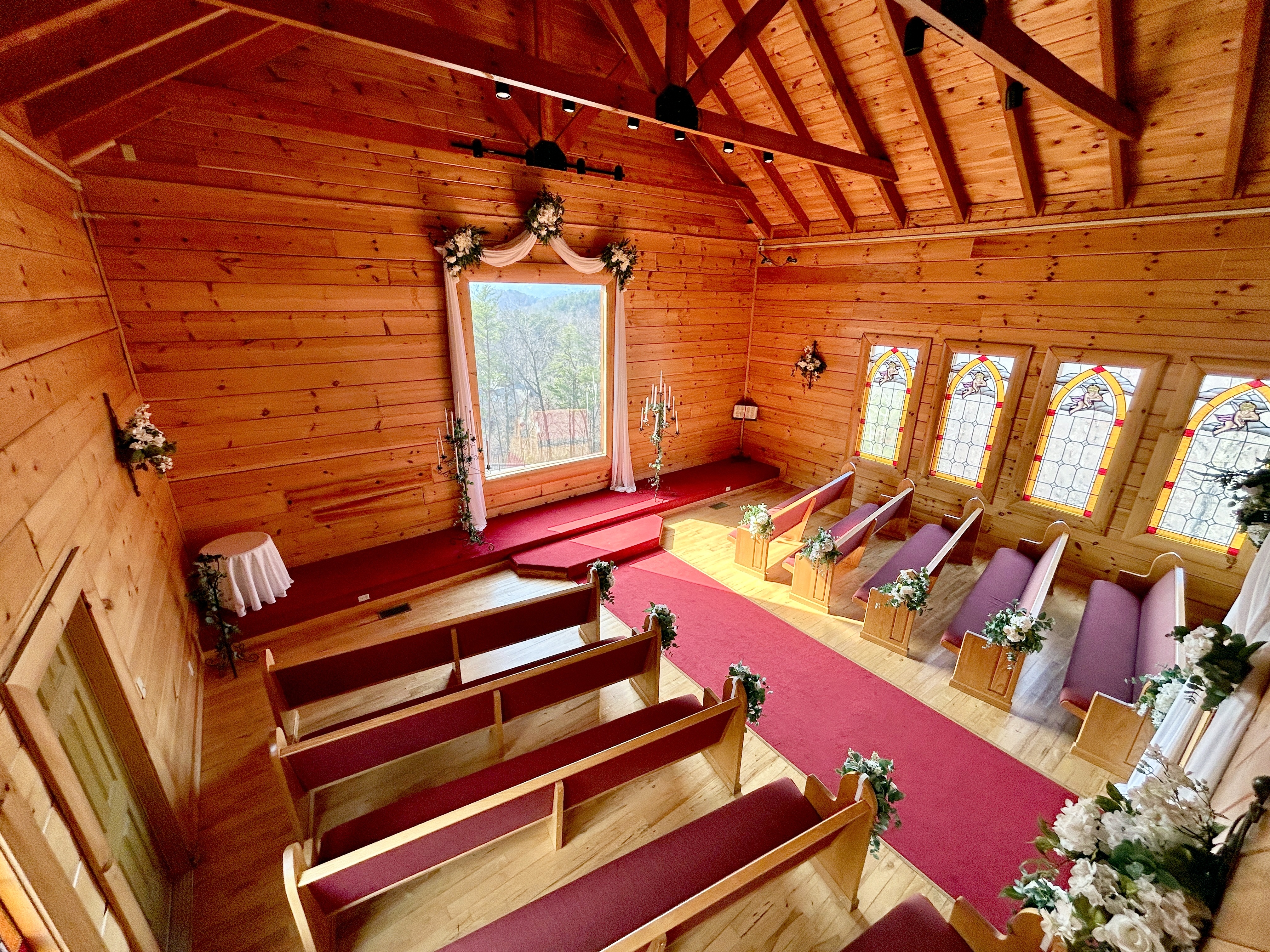 Our beautiful Pigeon Forge Wedding chapel is surrounded by majestic mountains and is located in Black Bear Ridge Resort, nestled in the mountains only 5 minutes from the Parkway in exciting Pigeon Forge, Tennessee. We have it all for a STRESS FREE WEDDING: Ceremony, Minister, Music, Salon, Massage, Make Up, Cabins, Full Reception Hall, Photography, Video, Wedding Cakes, Limo Services and featuring our Cinderella Ball Carriage. Your special day is a once in a lifetime event that calls for an equally powerful setting. We can accommodate a simple couple’s only ceremony as well as an extravagant plus wedding with up to 65 guests. Our wedding coordinators will help you plan every aspect of your special occasion with various options for a unique backdrop depending on the season. Our beautifully appointed Chapel and stone tower allows for some incredible memories captured by our professional photographers and is located within Black Bear Ridge Resort where you and your guest can enjoy the very best accommodations that Pigeon Forge has to offer.